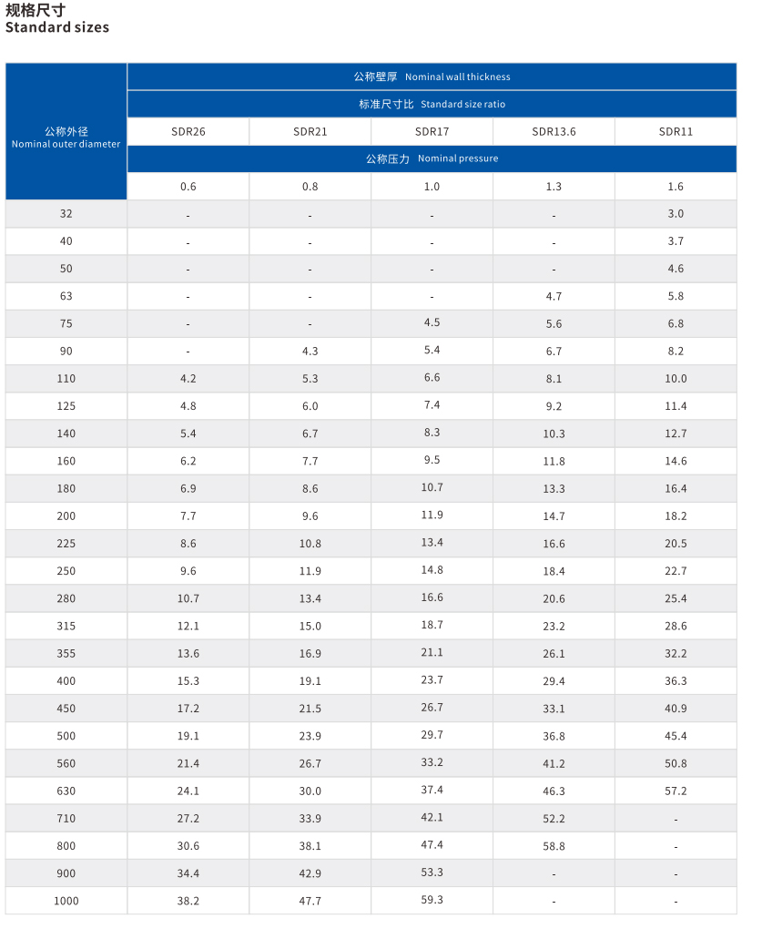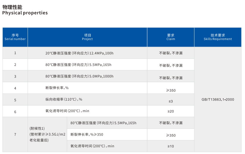 PE管(guǎn)分子量高具(jù)有良好的穩定性能與抗老化性能,在正常(cháng)的工作溫度與(yǔ)壓力狀況下,PE管使用壽命可保證在50年以上。.
